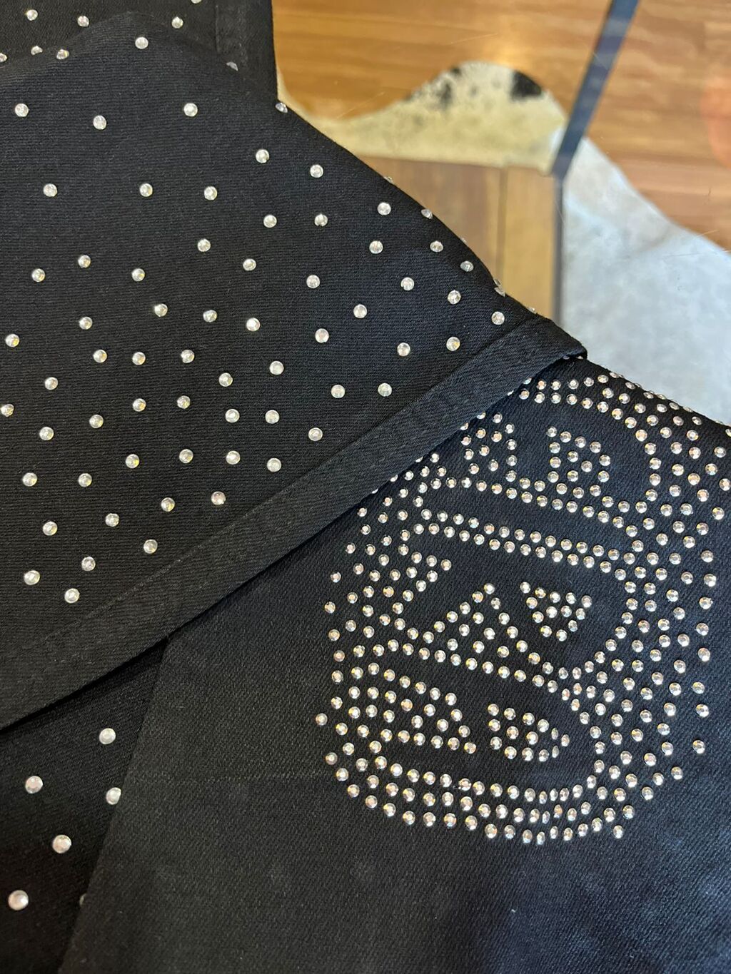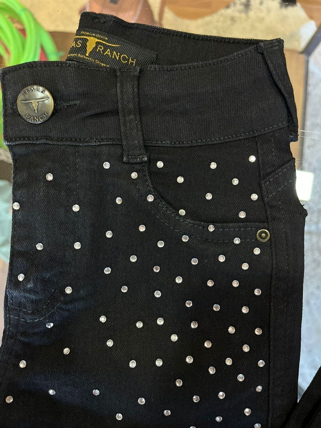 CALÇA TEXAS RANCH FEMININA INFANTIL FABRICADA EM TECIDO DE ALTISSIMA QUALIDADE NA COR PRETA , COM BRILHO POR TODA A PEÇA