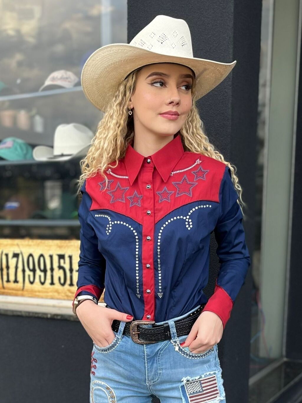 A Camisa Feminina Zenz Western America é a peça ideal para mulheres que desejam se destacar com autenticidade e sofisticação. Confeccionada em tecido de alta qualidade, ela apresenta um design inspirado no estilo country americano, com bordados em formato de estrelas, aplicações exclusivas e corte acinturado que valoriza a silhueta feminina. Perfeita para compor looks marcantes em rodeios, festas e no dia a dia.