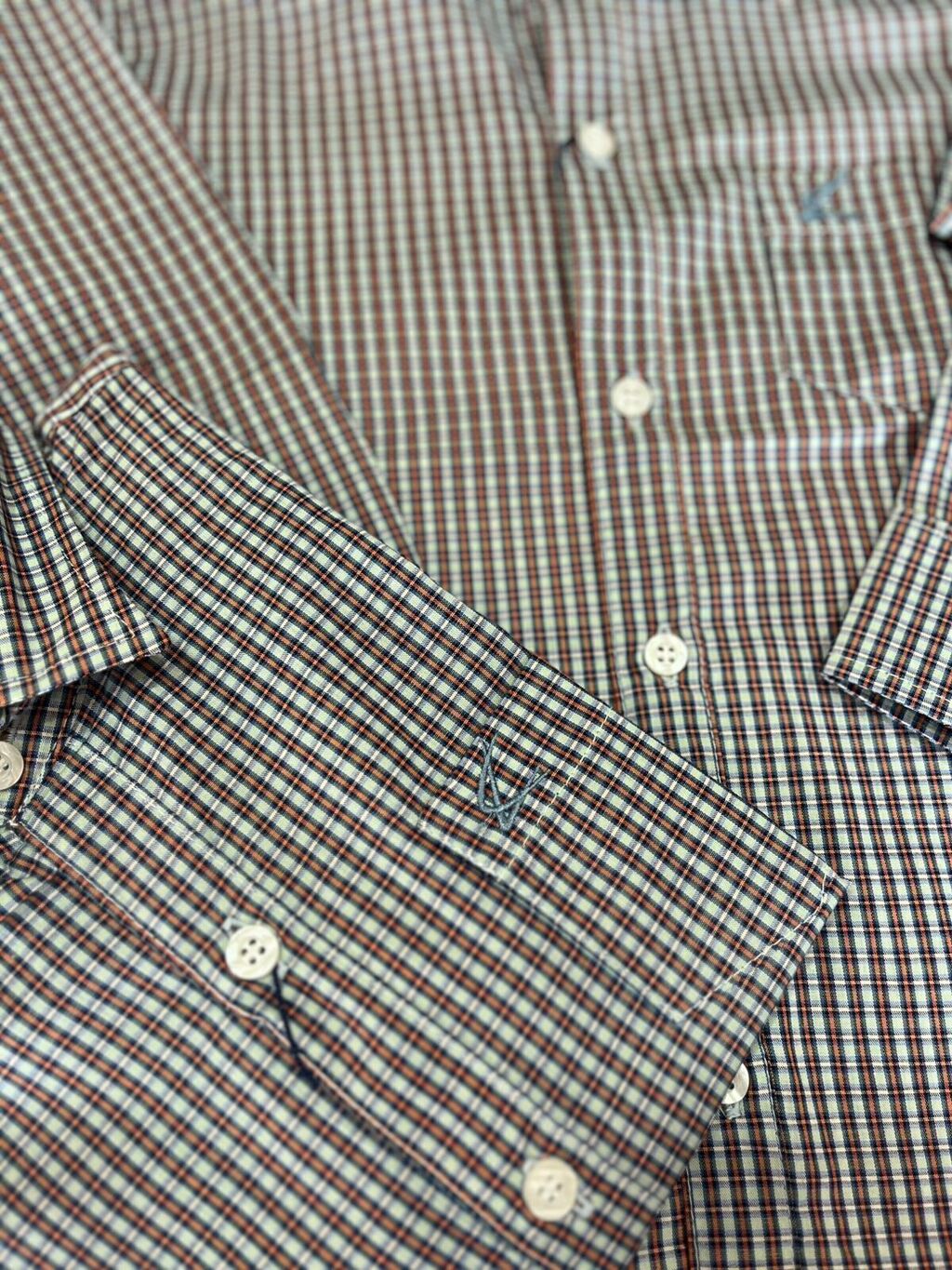 CAMISA INFANTIL MANGA LONGA FABRICADA EM TECIDO 100% ALGODÃO DE ALTISSIMA QUALIDADE XADREZ LARANJA