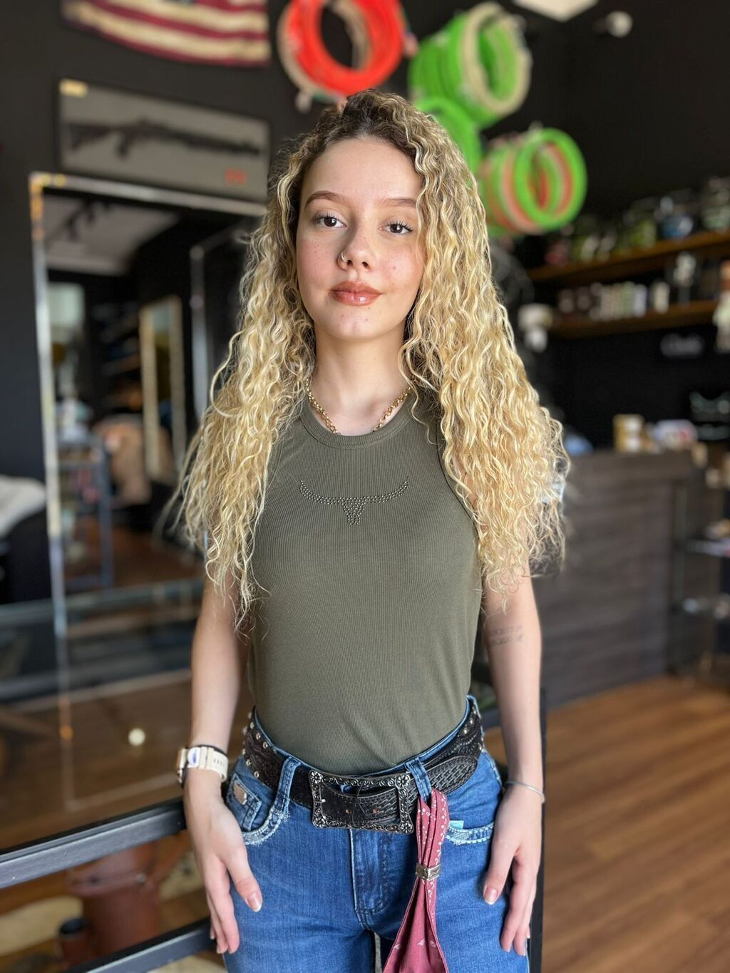 O grande destaque dessa peça é o detalhe frontal em strass, formando o icônico longhorn da marca Moiadeiros, que traz brilho e um toque sofisticado ao look. Feita em tecido canelado com algodão e elastano, proporciona ajuste perfeito e liberdade de movimentos.